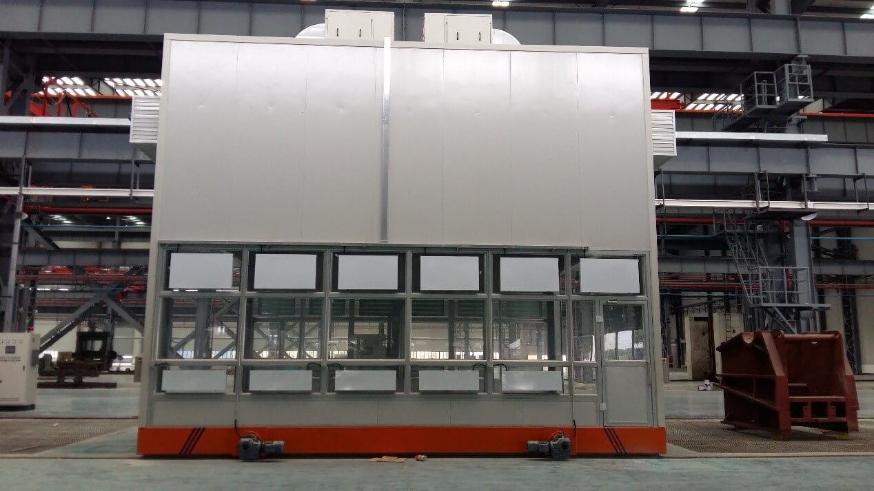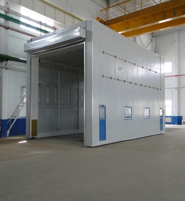 龍門移動(dòng)式噴漆間是本公司為解決重型工件移動(dòng)困難及工作區(qū)可連續(xù)交叉作業(yè)的綜合利用而專門設(shè)計(jì)的實(shí)用性產(chǎn)品。解決了一般固定式噴漆間重型工件移入移出繁瑣的工序。工件噴漆前首先通過(guò)啟動(dòng)預(yù)定程序?qū)⒎矿w移動(dòng)至噴漆場(chǎng)地,罩住工件后即可進(jìn)行噴漆作業(yè),如此設(shè)計(jì)可以實(shí)現(xiàn)大型工件的不間斷連續(xù)噴漆工作。